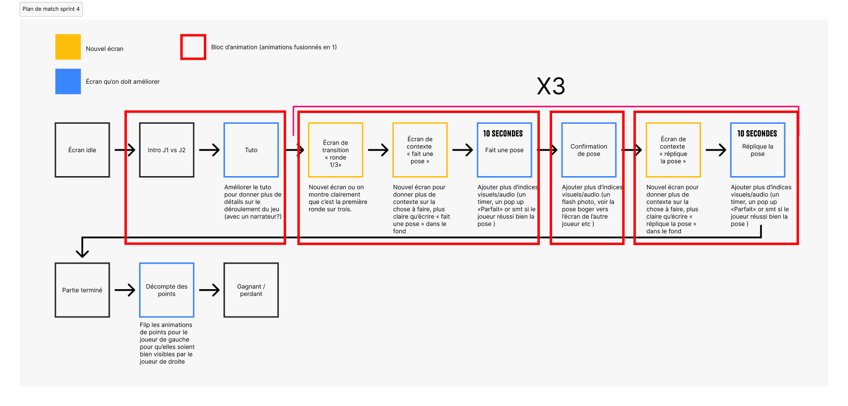 Au départ, les informations de la partie, comme le texte “Fais une pose”, apparaissaient en même temps que le joueur devait exécuter l’action, avec le texte superposé à sa silhouette. Ce moment était donc ambigu et créait de la confusion.